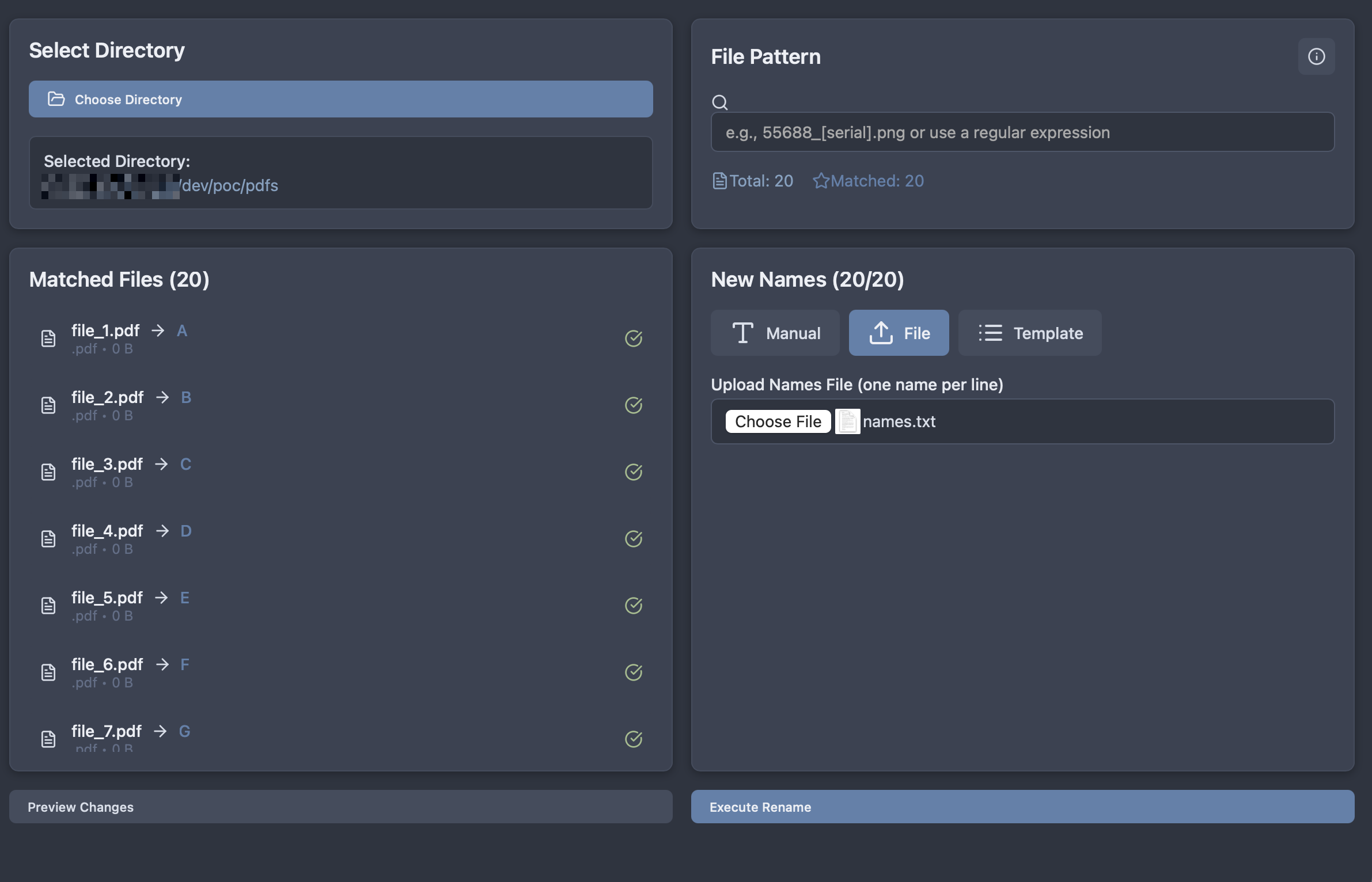 「有沒有辦法做一個簡單的程式,讓我選個資料夾、貼上新檔名列表,然後一鍵搞定?」他滿懷希望地問我。