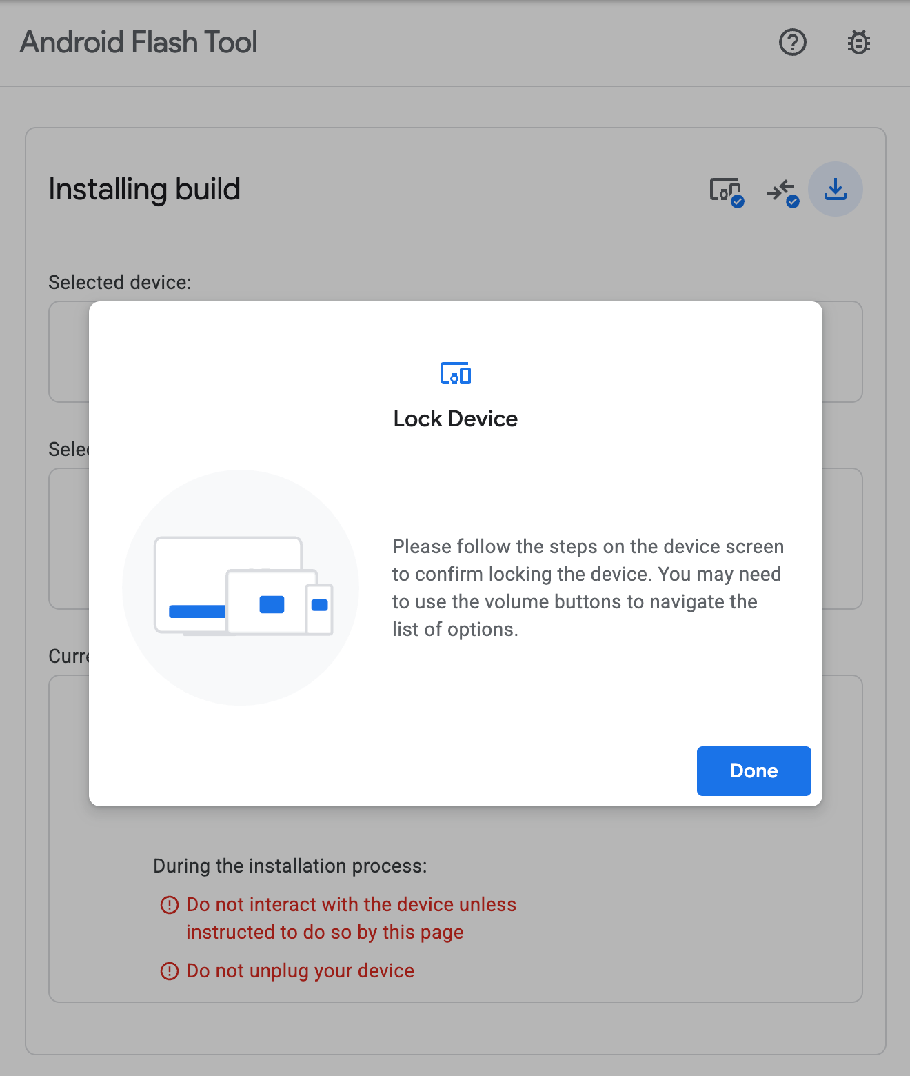 如果是從 GrapheneOS 的 Locked Bootloader 狀態回來,中間可能會需要你在手機上透過音量鍵確認 “Unlock the bootloader” 的動作,工具畫面都會有提示,跟著做就行。