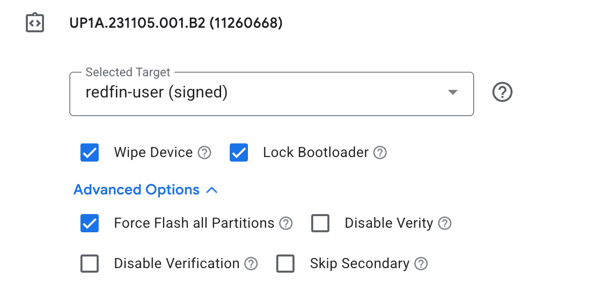 - Lock Bootloader: 這是重點。如果你是要回歸完全的原廠狀態,並且希望通過 SafetyNet / Play Integrity API(用 Google Pay 等),請務必勾選這個選項。它會在刷機完成後,重新把 Bootloader 鎖上。