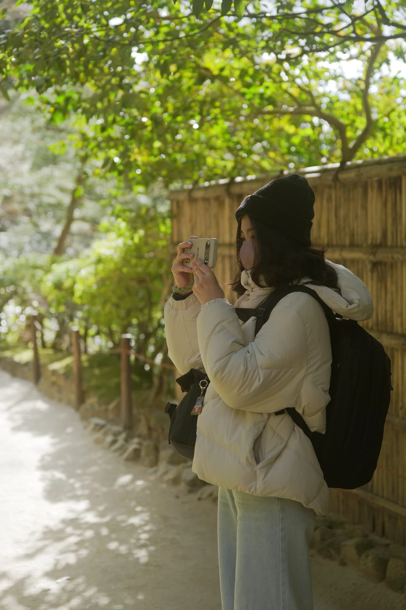 下山後我們回到三條的松烏享用(?)牛肉飯,緊接著搭乘京都市巴士前往銀閣寺。銀閣寺的路上,被一間叫「AG COFFEE. 銀閣寺」的咖啡店給攔了下來,門口寫著「極度外國人友善」的告示,這種直球的友善宣言讓我們忍不住走進去。結果意外喝到了非常好喝的咖啡,有時候旅途中最好的體驗就是計畫外的偶遇。