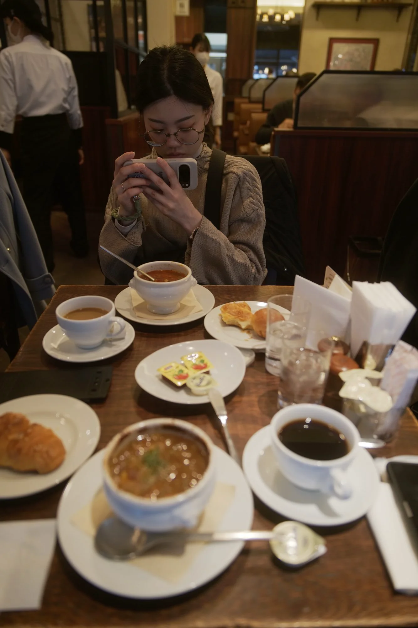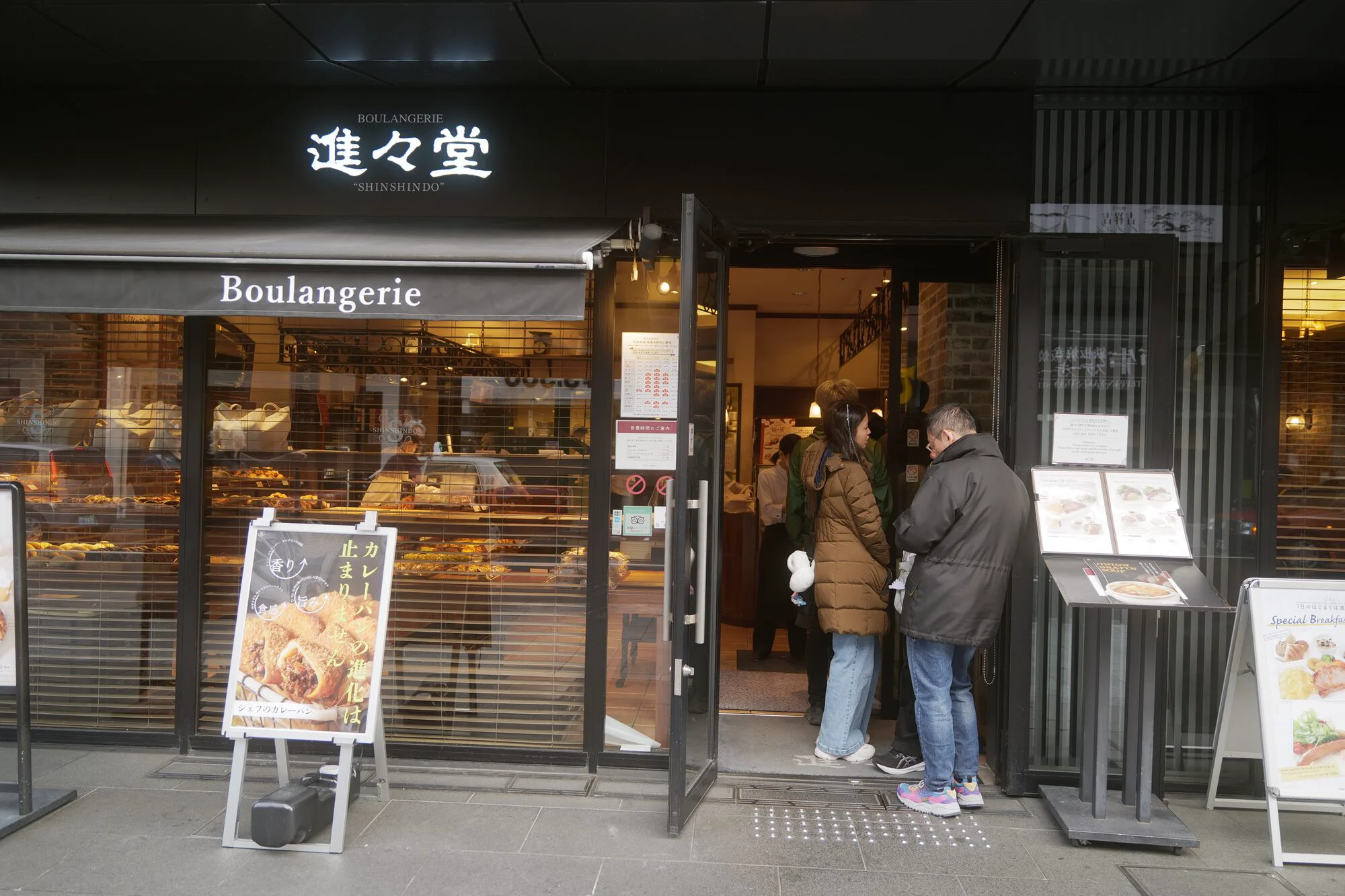 早餐是前一天才臨時查的,最終決定到Shinshindo - Sanjo Kawaramachi(老店進々堂)吃「麵包吃到飽」。身為一間從大正時代就開始營業的麵包店,內用的顧客只有大約 10% 不是日本臉孔,意外地吃到了在地人也會吃的美食嗎,推薦給每一個到京都的旅客。在享用早餐時,覺得進進堂的咖啡有夠苦,查了才知道京都的咖啡文化中,若是傳統派、老字號等等,幾乎都會是深焙咖啡,較現代的咖啡廳(新派?)則會更注重產地、烘焙方式等等,也就是所謂的精品咖啡。當然也會有舊瓶裝新酒,也就是老屋老裝潢內卻喝的到淺中焙的咖啡,看來下次若要前往則需要好好查查想想喝哪種咖啡。